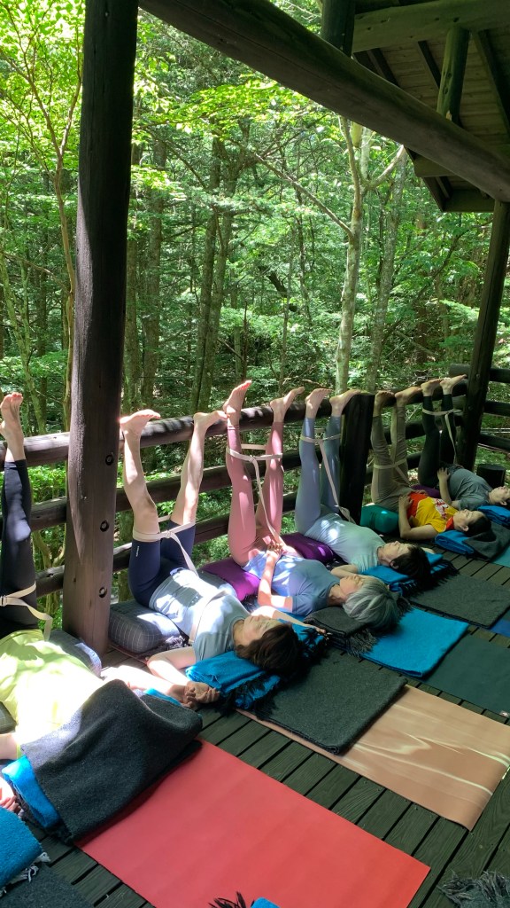 逆転のポーズやいろいろ、5分や8分、アーサナをホールドできたのが、やった感あり、じっくりと体をかんじることができました。リトリートならでは ですよね。