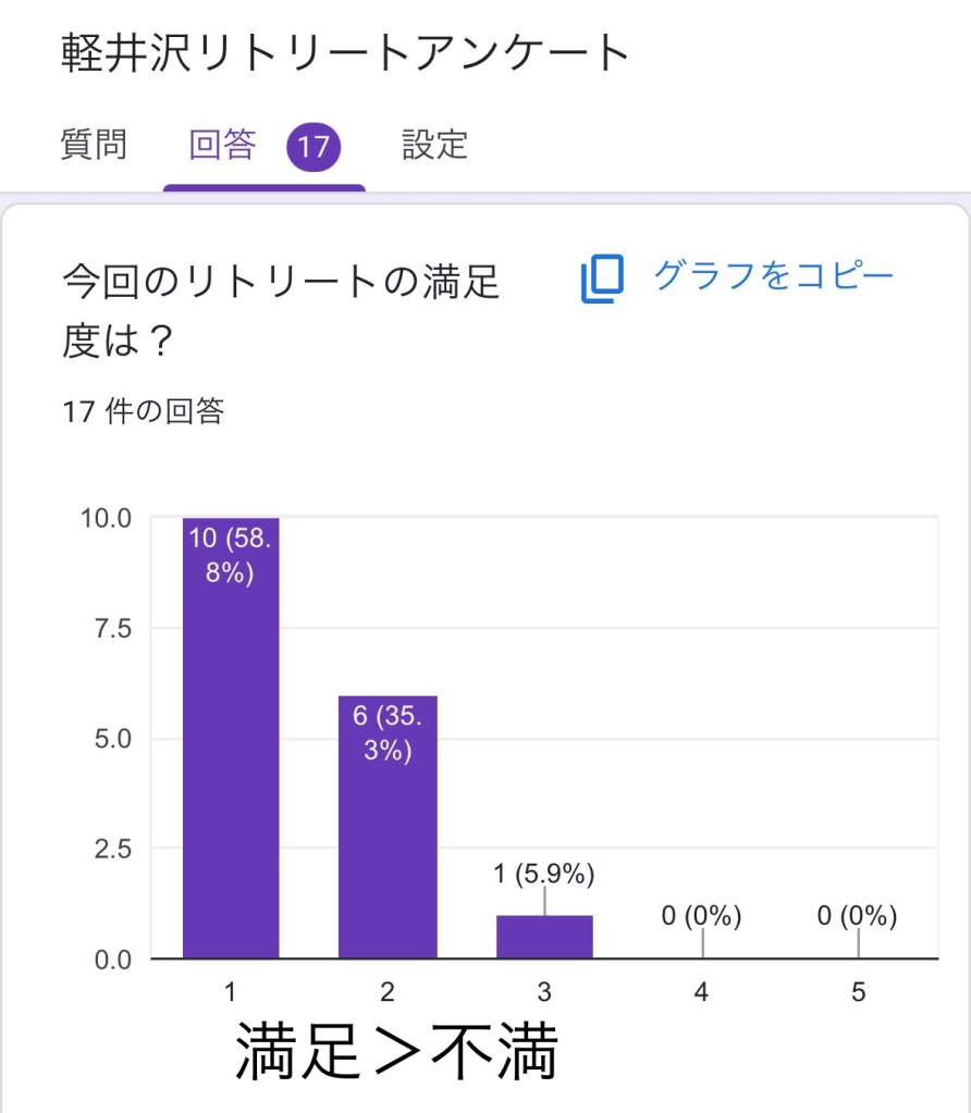 今回のリトリートご参加いただいたみなさんに、匿名でアンケートにご協力いただきました。