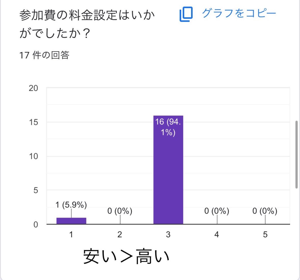 はい!こちらは、ご参加のみなさんならご理解いただける結果です。ご飯も美味しかったし、みなさん優しくて良い方たちでした😊
