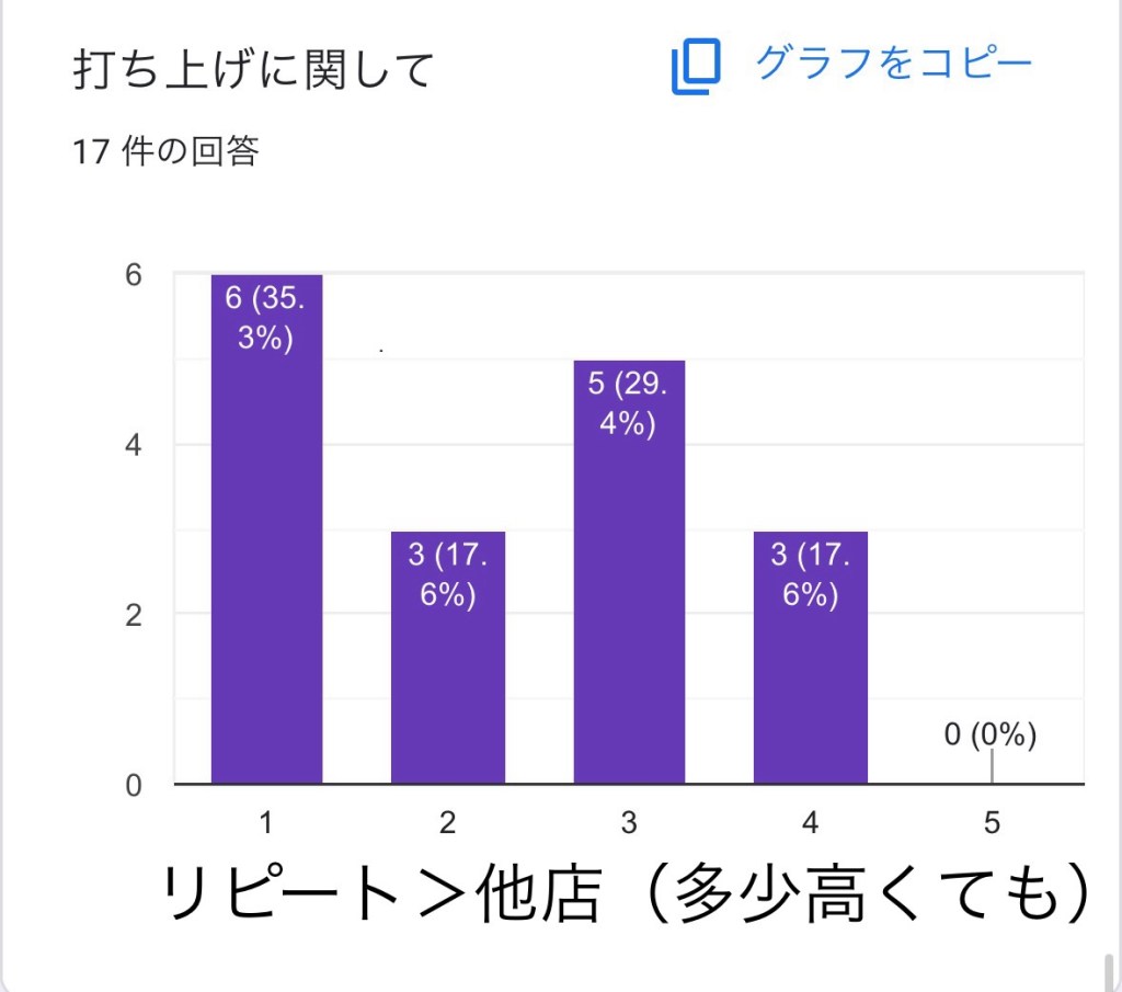 リストラティブしたかった派は、たぶん平日グループの方かな? 2つに分かれているのは、今回、週末、平日でメニューをがらっと変えたから!と私は予想してます。